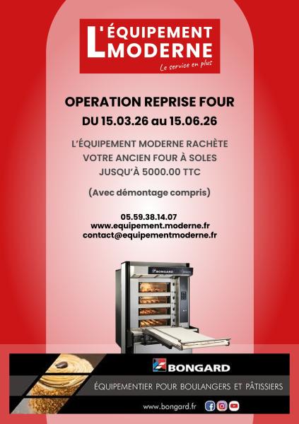 Facebook Twitter Email OPERATION REPRISE FOUR 10/03/2026 L'EQUIPEMENT MODERNE rachète votre four , jusqu'à 5000.00 TTC , démontage compris Pour plus amples informations , n'hésitez pas à nous contacter Lire la suite